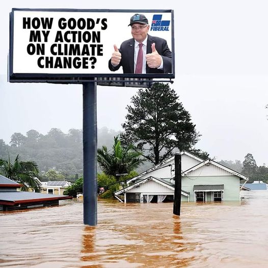 1 April | Australia A special message for flood-afflicted Australia’s ‘Fiberal’ prime minister, Scott Morrison. A coal-addicted climate criminal, Morrison has since called a general election for 21 May. For the sake of the planet and his own country, let’s hope the people vote him OUT OUT OUT!