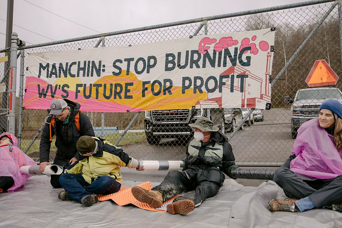 8-10 April | Grant Town, West Virginia, USA Activists blockade the coal plant that put millions of dollars in the pocket of the Democrat US senator who has been blocking US climate change legislation. The activists were moved by state police and had their locks cut in preparation for arrest.