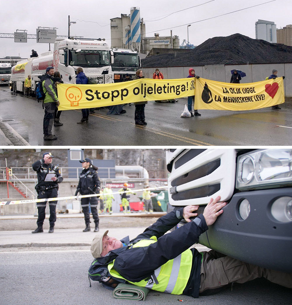 1-6 April | Oslo, Norway Activists of Just Stop Oil Norway repeatedly blocked the Sjursoya Oil Terminal in Oslo for the fourth time in a week.