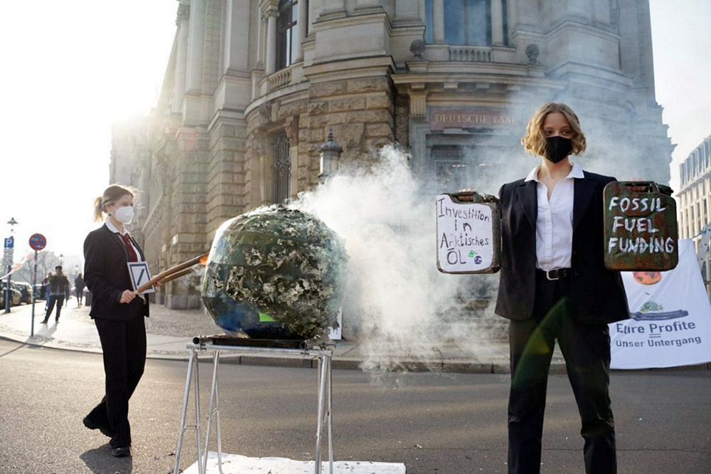 27 March | Leipzig, Germany Earth is burning! An action by XR Leipzig in front of the Deutsche Bank.
