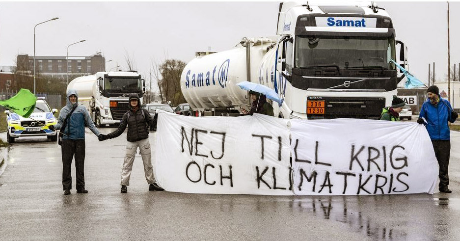 7 April | Malmo, Sweden A dozen rebels blocked the road to Oljehamnen in protest against a ship delivering Russian oil.