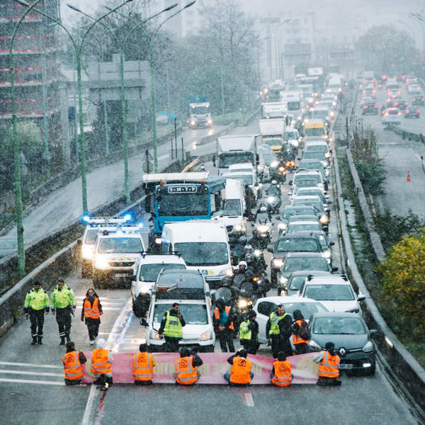 1 April | Paris, France While snow fell, ten brave rebels blocked the Boulevard Peripherique, the busy Paris ring road, for 30 minutes. They were calling for the energy renovation of housing in France, without which greenhouse gases from the residential sector will increase and more than 12 million people will be left in fuel poverty.