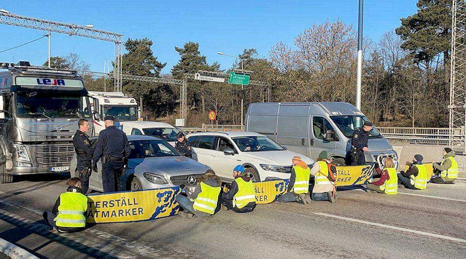 28 March | Stockholm, Sweden Eight rebels were arrested when blocking the central bridge in Stockholm. They were demanding that the government restore wetlands, which would reduce climate emissions by as much as all of Sweden's car traffic.