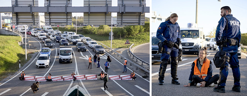 19 April | Switzerland Renovate Switzerland is a new campaign of civil resistance asking the government to renovate buildings across the country. Activists blocked major highways four times over April. Photos: Renovate Switzerland.