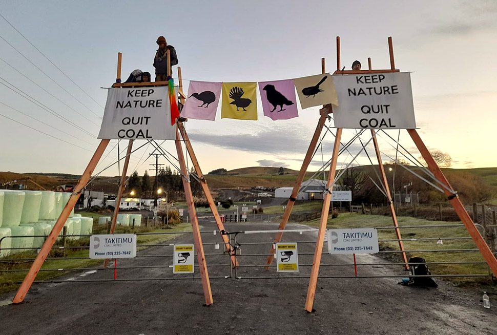 1 May | Southland, New Zealand Thirty activists are occupying the Tākitimu coal mine in Southland, owned by Bathurst Resources. The company is trying to expand its operations in the middle of a climate emergency.