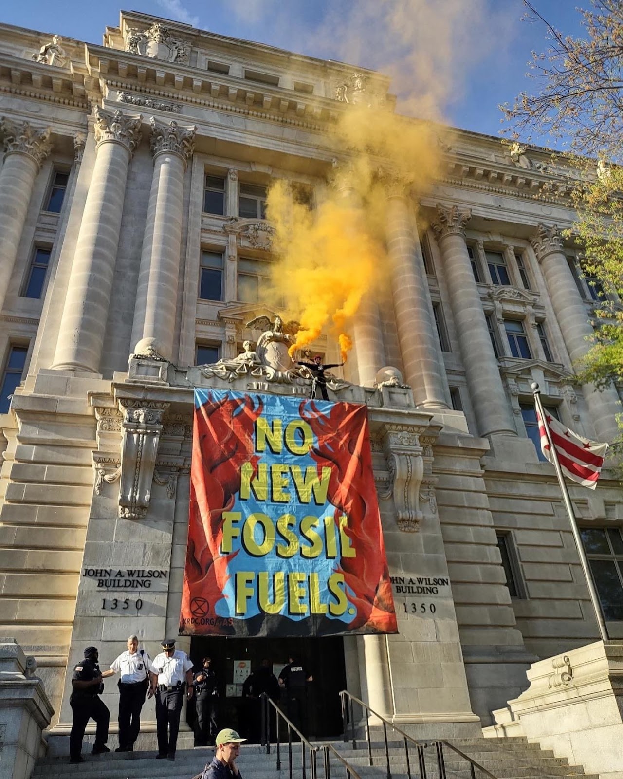 22 April | Washington DC, USA XR DC blockaded the entrance to city hall with a huge banner, kicking off a campaign to stop new fossil fuel infrastructure in the capital.