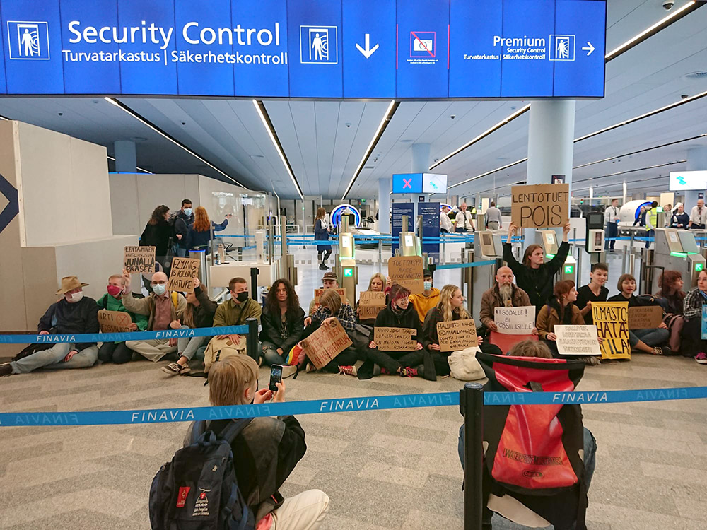7 May | Helsinki, Finland Rebels from Elakopina (XR Finland) demonstrate against flying at Helsinki airport.