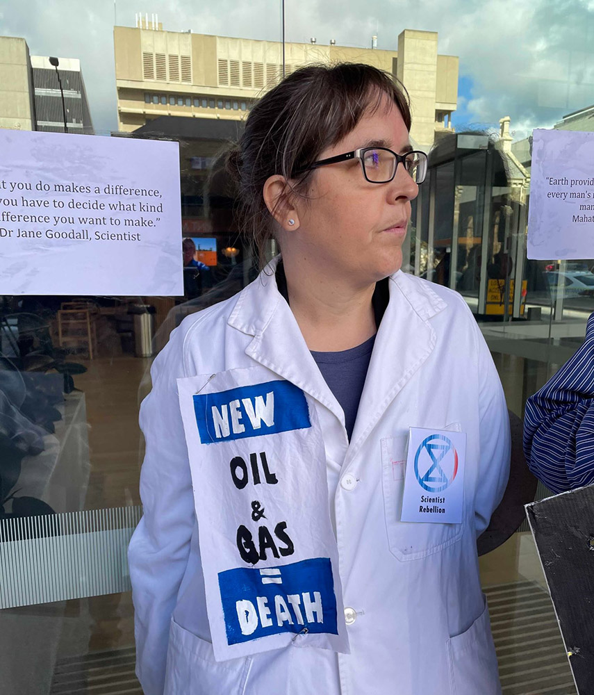 4 May | Newcastle, Australia Scientists have glued themselves to the HQ of oil company Santos in Adelaide. They're also glued to Flinders Street, blocking traffic in front of the building. They're demanding an immediate halt to all new oil and gas exploration, mining and production. It's time to listen to the experts!