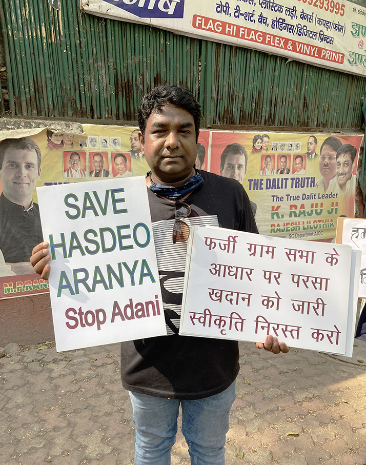 5 May | Chhattisgarh, India One of many protests against the felling of trees in the Hasdeo Aranya forest after the state government approved the second phase of the Parsa East and Kete Basen coal mines, projects operated by the Adani Group.
