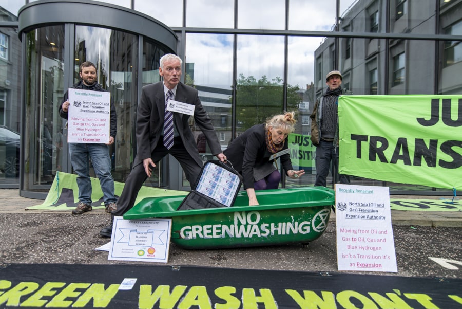 26 April | Aberdeen, Scotland Scottish rebels staged an anti-greenwash performance outside the North Sea Transition Authority, which continues to issue new licences for oil and gas development, and then set-up a pink table outside a trade union conference to discuss a just transition for oil workers.