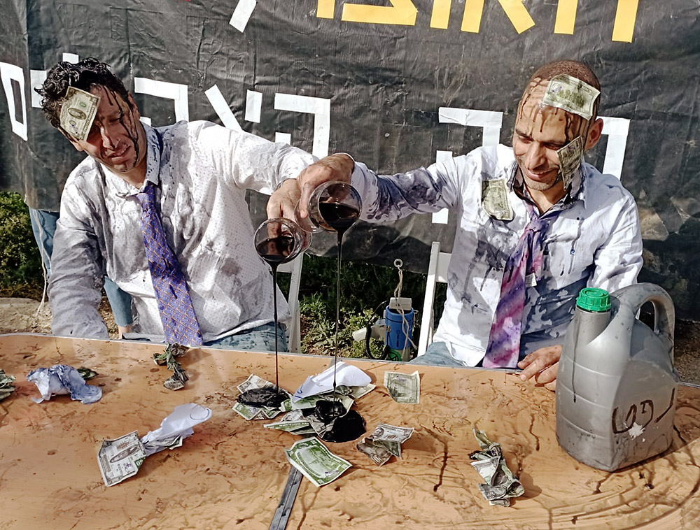 2 May | Tel Aviv, Israel Israeli rebels blocked the entrance of the Ministry of Finance and poured ‘oil’ onto dirty money in protest at the ministry’s ‘castration’ of the country’s Climate Law.