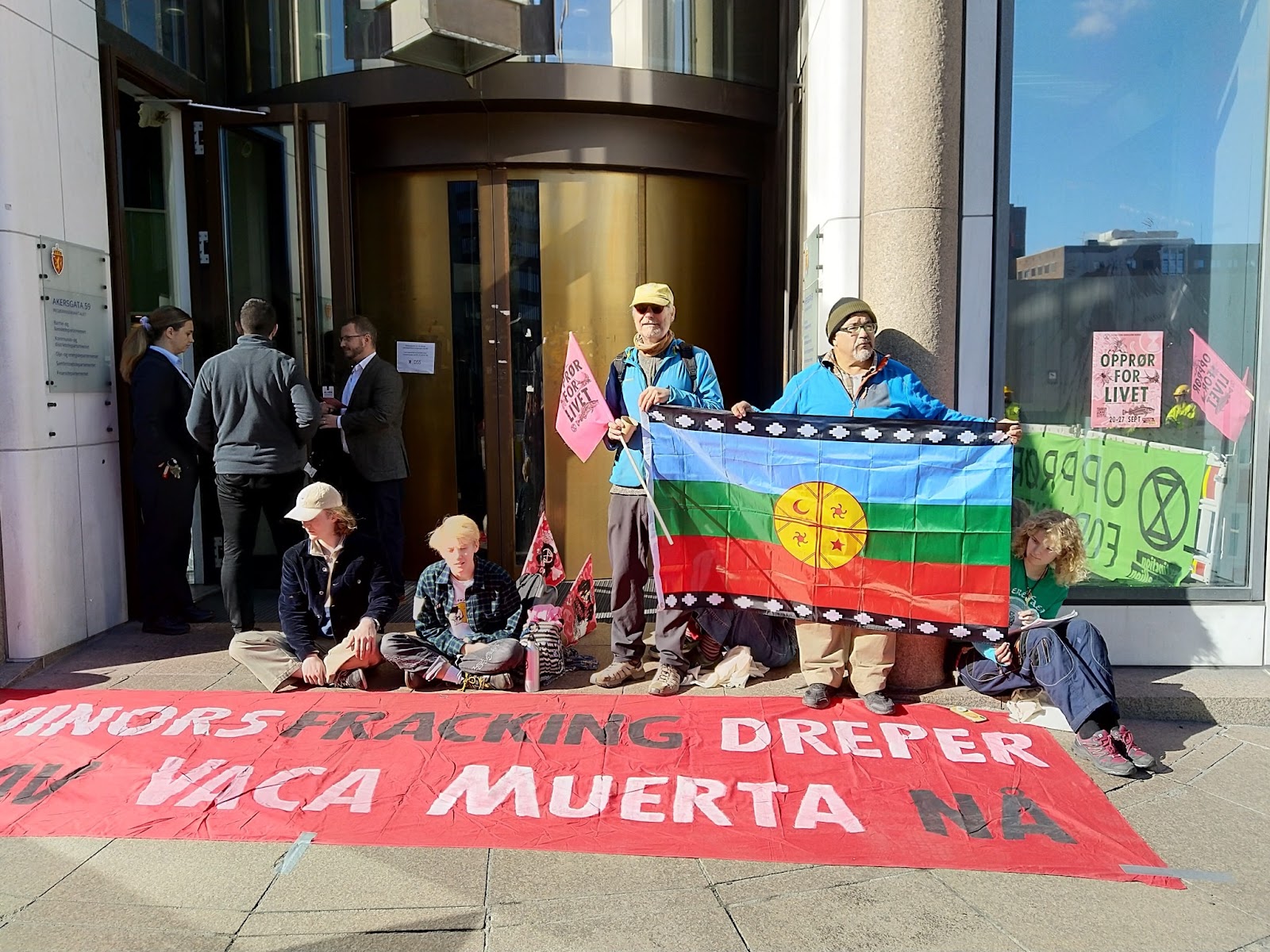 The protest targeted state-owned oil company Equinor for its ecocidal extraction of Argentine shale oil, and more specifically, its planned exploration of Vaca Muerta. The shale oil-rich region is home to the indigenous Mapuche people, and a representative joined the young rebels outside the ministry.