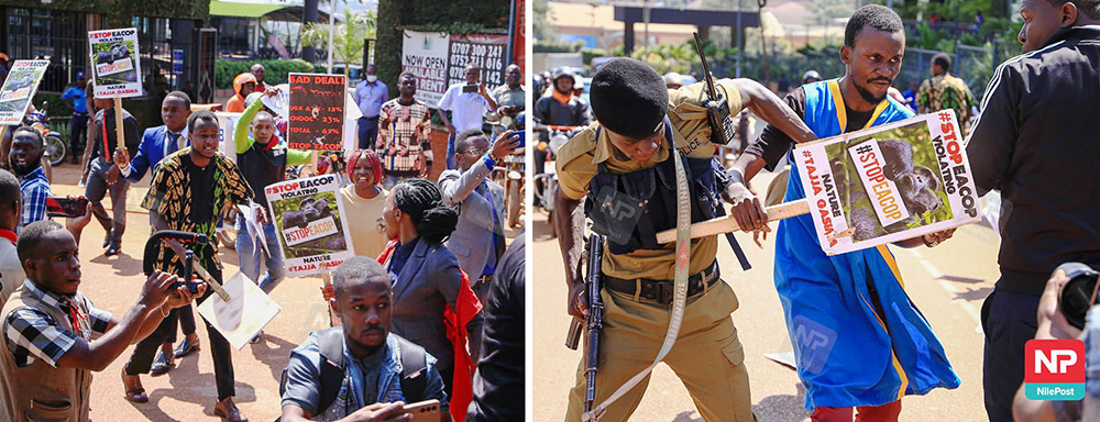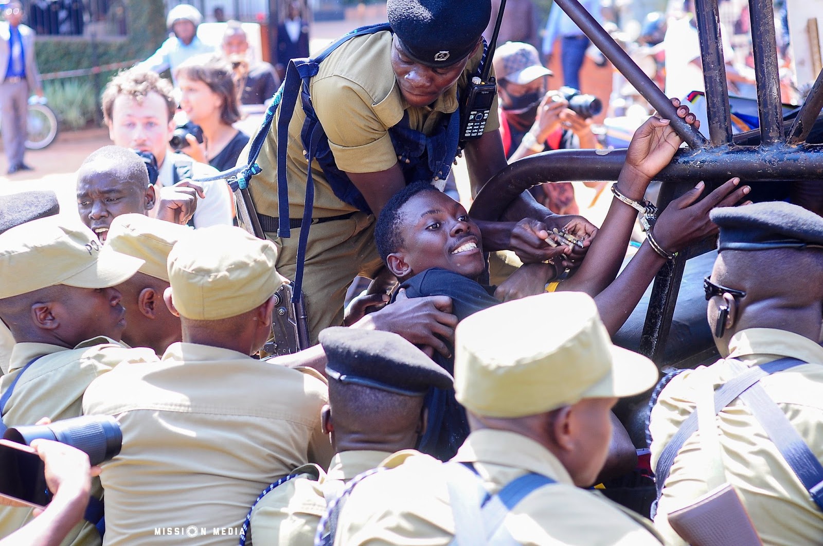 4 OCT | Kampala, Uganda: Police arrest and bundle nine university students into a jeep during a peaceful street protest against EACOP. The activists were denied bail and imprisoned by the local court pending trial, but allowed out on bail 6 days later.
