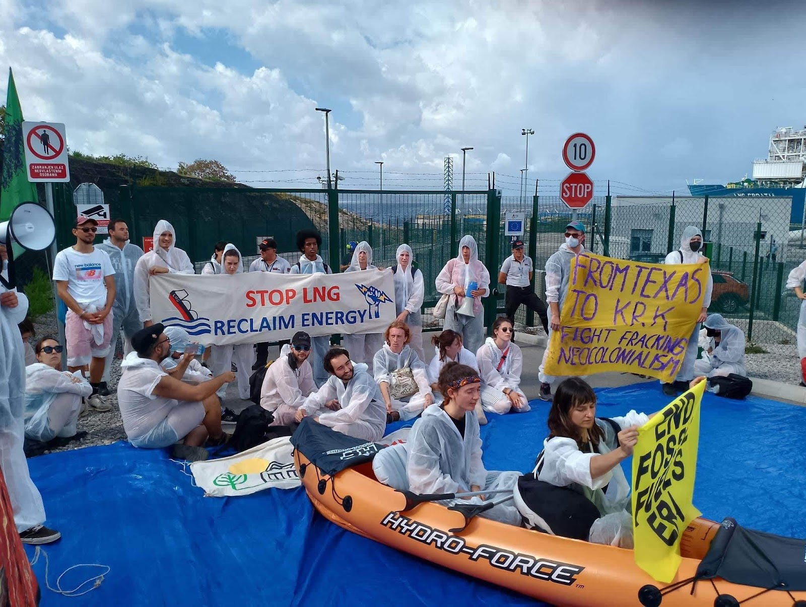 Climate Campers blockade the entrance to a new gas terminal on the island of Krk.