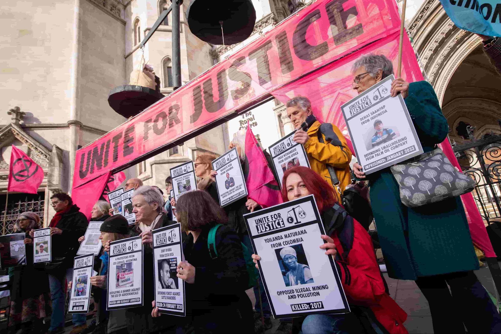 29 JAN | London, UK: Activists from more than 25 social justice groups – including XR, Just Stop Oil, and Netpol – gathered outside the Royal Courts of Justice to highlight the failure of the justice system to protect the rights of both people and planet. Climate activists whose campaigning had cost them their lives or liberty were remembered.