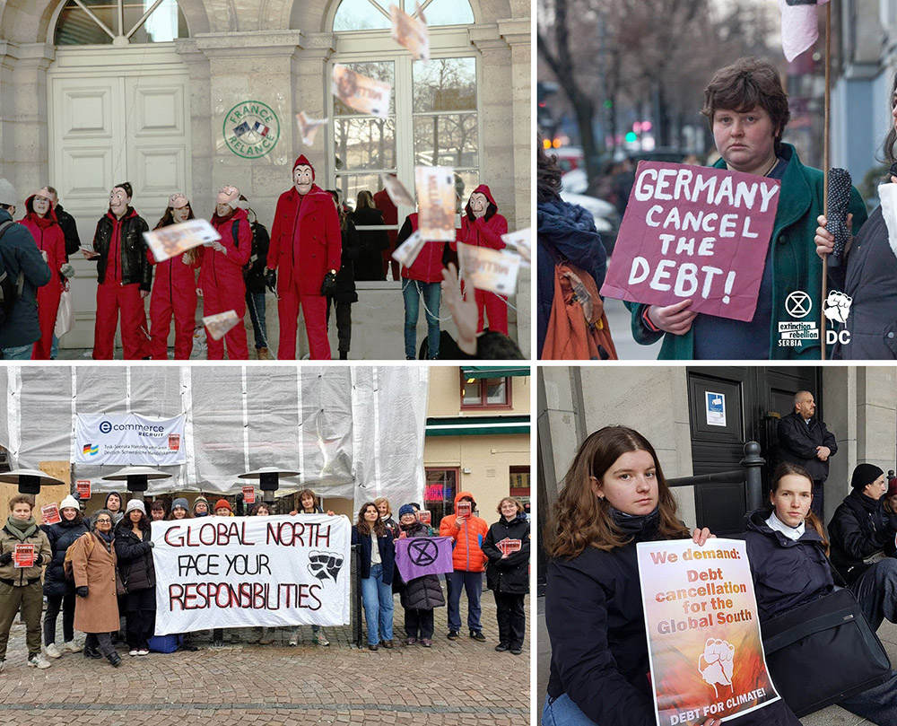 On the 70th anniversary of Germany’s debt cancellation, Debt For Climate (D4C) launched a global wave of protest that targeted the nation’s finance ministry and its embassies around the world. Activists from dozens of countries and climate groups, including XR, joined the call for Global South debt cancellation and a just transition for the region.