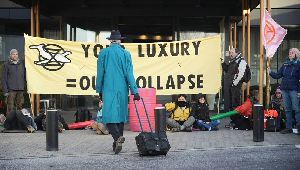 Rebels take part in a blockade of a private jet terminal in Brussels, Belgium. Photo: Brieuc Van Elst.
