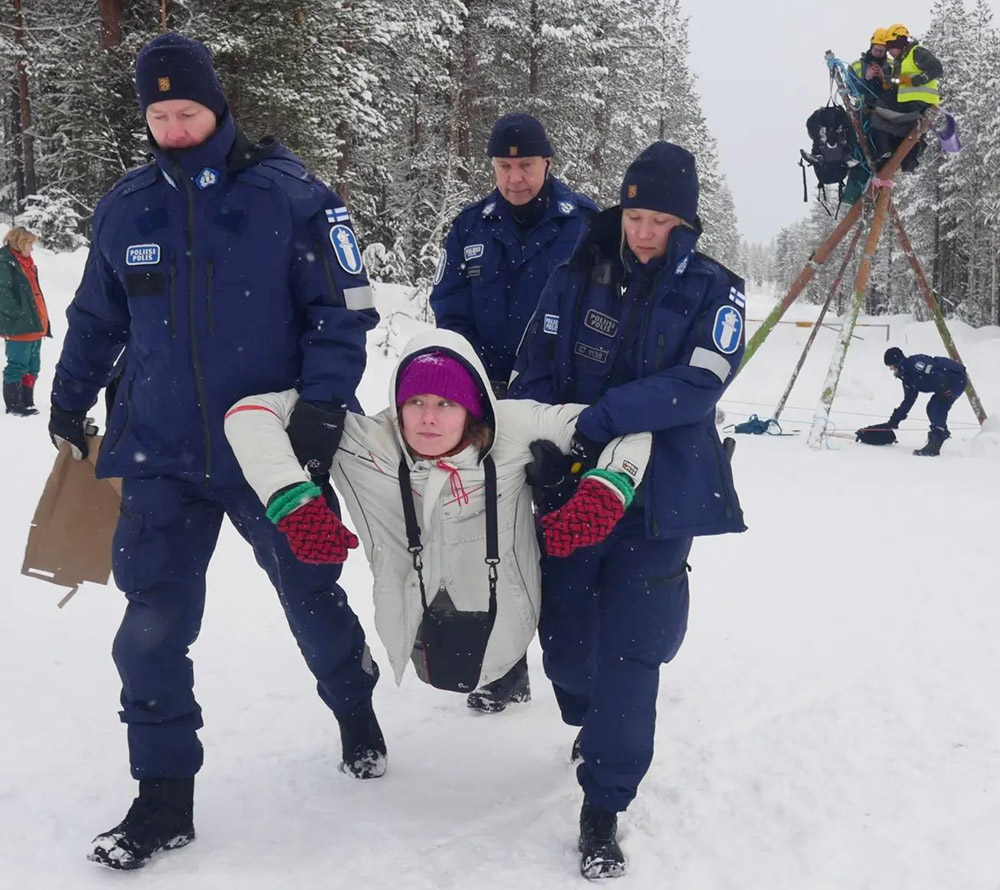 In the profound winter of Lapland, north of the Arctic Circle, determined non-violent protests continue against the logging of Aalistunturi forests (see Global Newsletter #73).