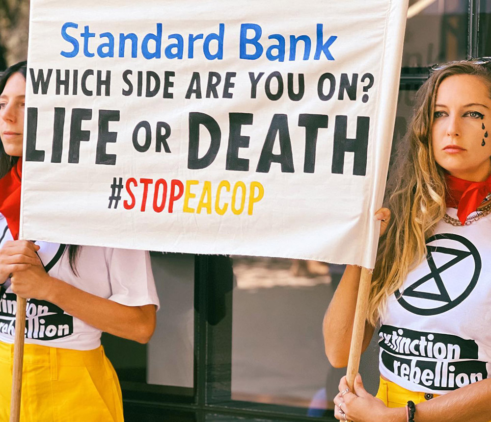 Rebels in Cape Town, South Africa, protest against Standard Bank’s funding of EACOP.