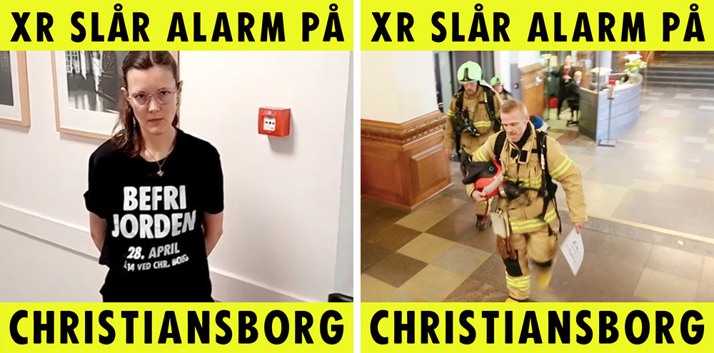 23 MAR | Copenhagen, Denmark: A rebel sounded the fire alarm at Christiansborg, the seat of the Danish parliament, after the UN climate panel published a new report so scary that the EU's climate chief said that if we don't speed up climate action, our children and grandchildren will have to fight wars for food and water.