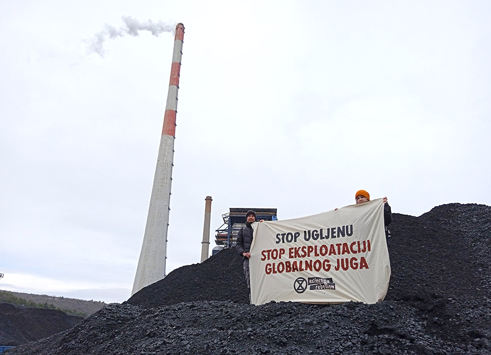 6 MAR | Zagreb, Croatia: At a coal power plant in Plomin, XR Zagreb protested the import of coal from countries affected by conflicts, human rights violations, and those forced into debt crisis by creditor institutions such as the IMF and World Bank.