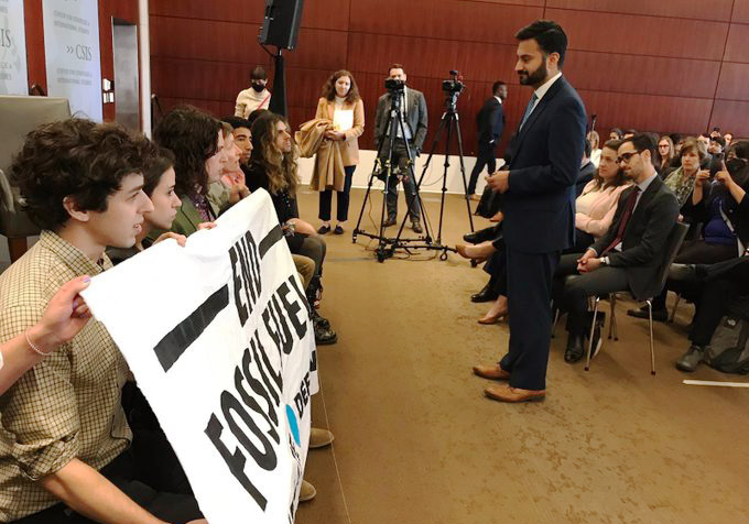 5 APR | Washington DC, USA: Three days after its launch, Climate Defiance, a new, youth-led American collective using disruptive action to stop fossil fuels, shut down the White House climate czar's keynote speech, confronting him in front of hundreds of elite policymakers. Climate Defiance intends to blockade the White House correspondents’ dinner this month to demand an end to fossil fuel extraction on public land.