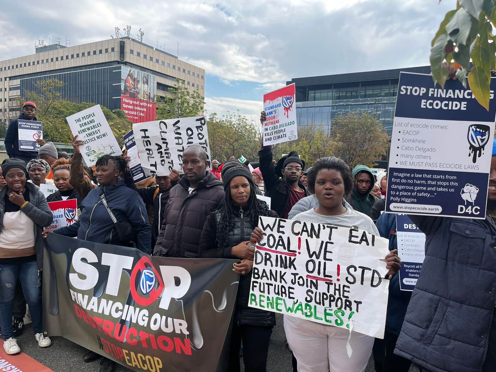 12 JUNE | Johannesburg, South Africa: Hundreds of activists, including rebels, rally outside the corporate HQ of Standard Bank during its AGM. A few made it inside, with one activist handing the CEO an award for human rights violations. Two more activists were forcibly evicted from the foyer. The South African bank supports the ecocidal oil pipeline EACOP as well as other fossil fuel projects across Africa.