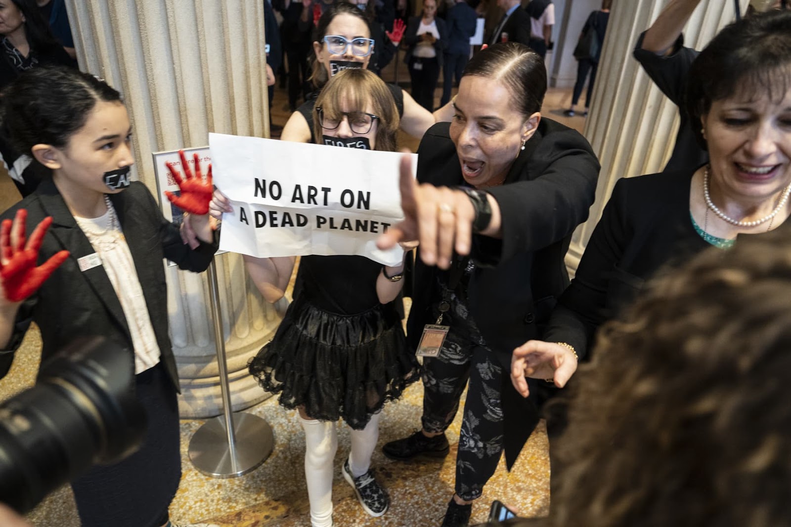 27 JUNE | New York, USA: Rebels joined a solidarity action for two Declare Emergency activists facing up to 10 years in prison and a $500,000 fine after their peaceful protest at the National Gallery of Art in Washington, DC. Meanwhile, youth activists with the new group, Climate Defiance, shut down a fundraiser for a New York Senator who takes bribes to wave through oil pipelines. Climate Defiance is just three months old, but has already disrupted events held by 5 US Senators and 2 Presidential Advisors for their complicity in ecocide.