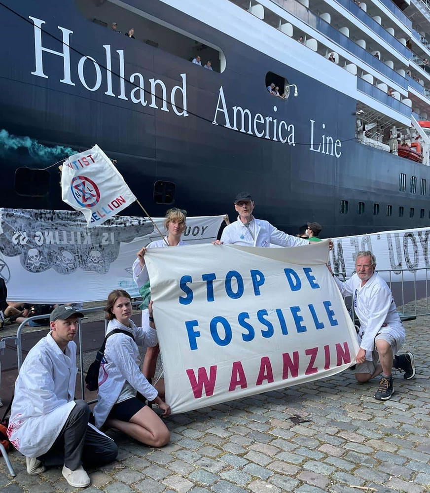 11 JUNE | Rotterdam, Holland: 60 rebels and Scientist Rebellion activists delay the departure of a cruise ship from the Port of Rotterdam. They called on city authorities to ban all cruise ships. The average cruise produces twice the CO2 as a holiday by plane, and the shipping industry is yet to produce a roadmap to sustainability.