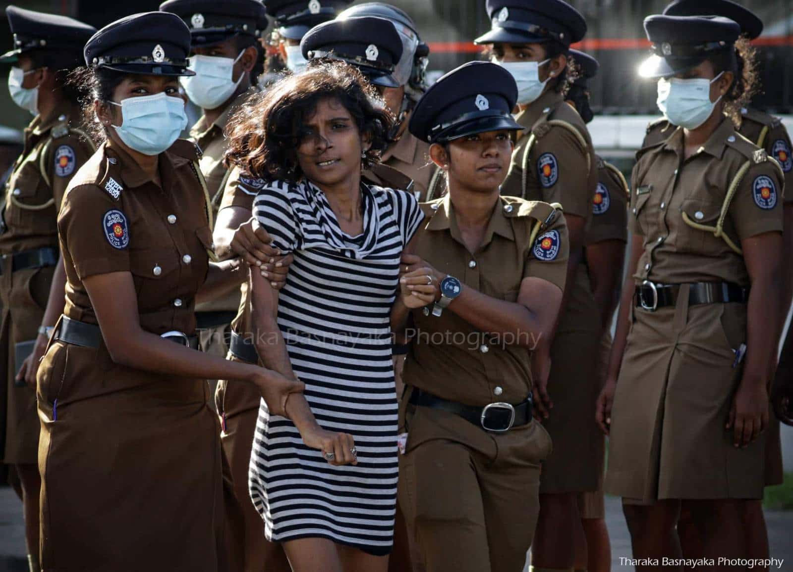 Melani is arrested during a protest by the Socialist Youth Union. Photo: Tharaka Basnayaka @tharaka_