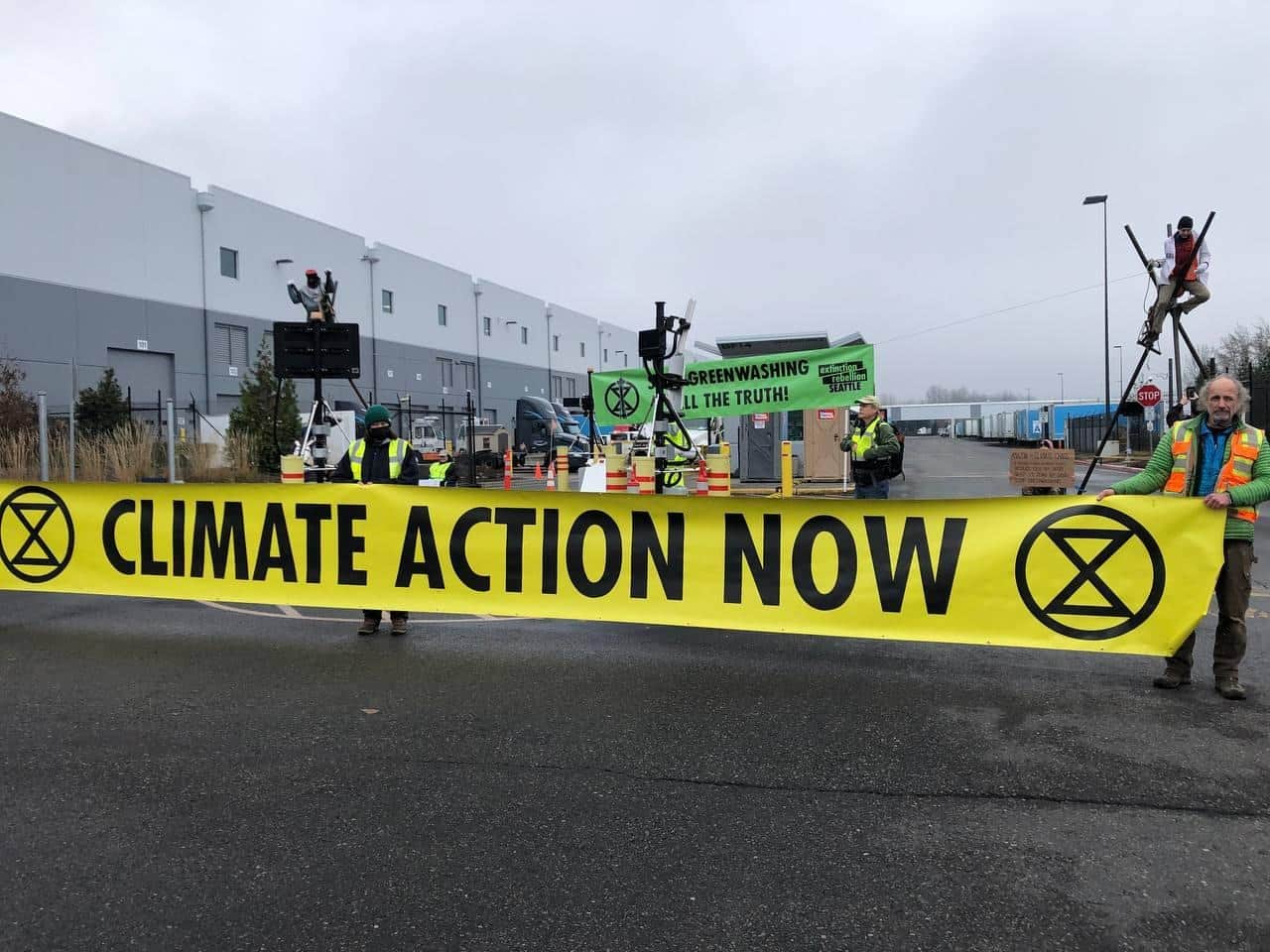 18 DEC | Seattle, USA: XR Seattle blockades an Amazon warehouse to protest the colossal damage the corporation is doing to ecosystems and communities around the world. Rebels demanded accountability and drastic reform as five protesters locked on beside a crowd of supporters. The action was originally meant to happen on Black Friday, but was postponed when details were leaked to the police.