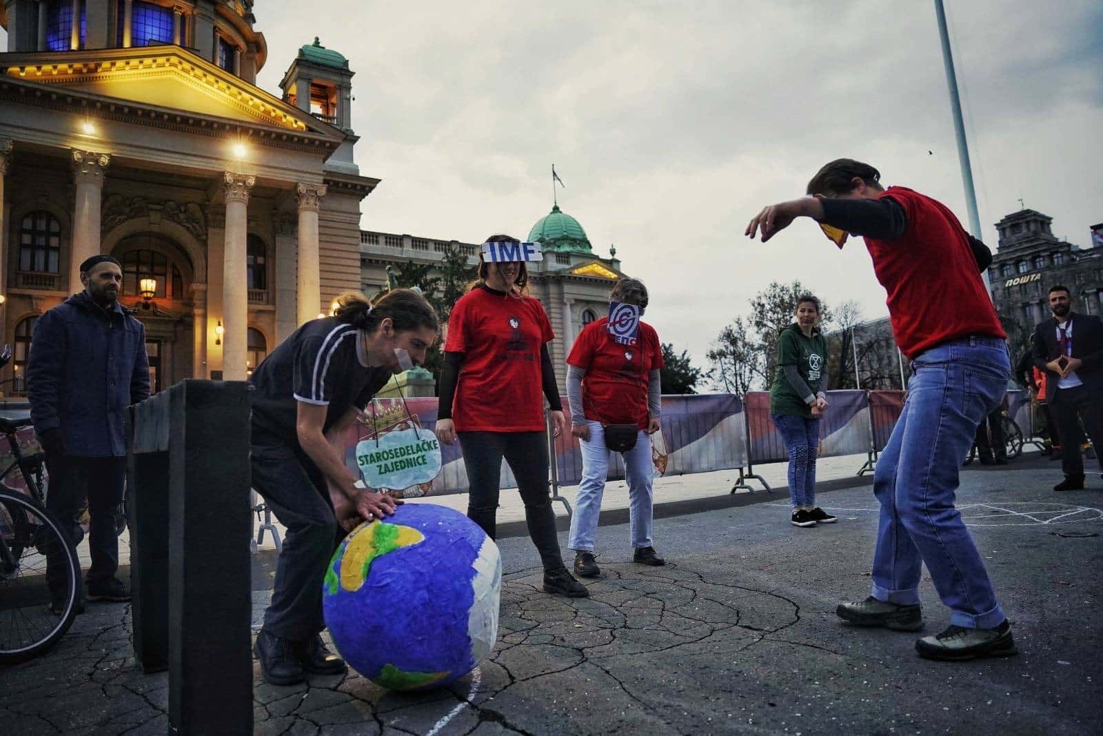 25 NOVEMBER | Belgrade, Serbia: XR Serbia played a football match against Capitalism FC in front of the Serbian parliament during COP28. Ecocidal corporations like Rio Tinto want to dig up Serbia’s rich mineral deposits, and the politicians are happy to oblige. Weeks later, rebels joined a series of huge blockades in the capital after the government was accused of stealing a December election. Police used tear gas and violence to clear the protests.