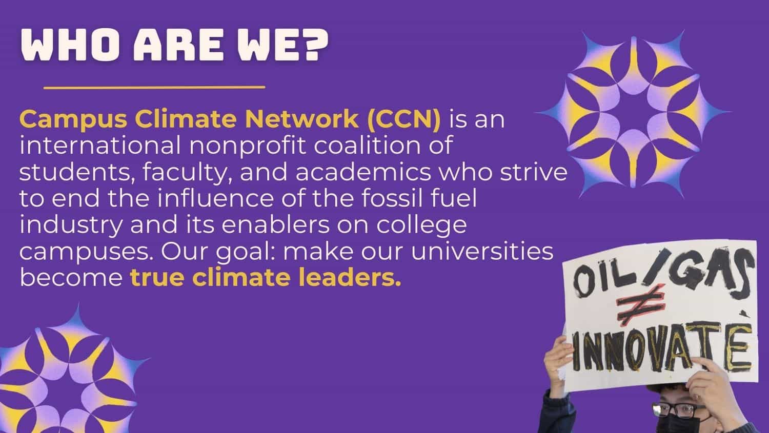 If you are a university student who wants to find out more about Campus Climate Network, email Alicia Colomer: acolomer@campusclimatenetwork.org