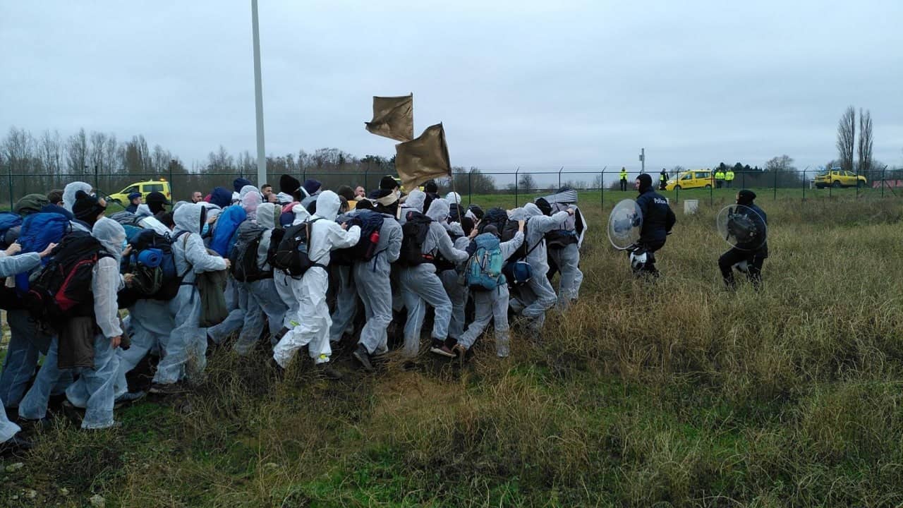 16 DEC | Liège & Antwerp, Belgium: Code Rouge/Rood activists from across Europe disrupted Liège Airport and Antwerp Airport to demand degrowth of the aviation industry and an end to private jets. Police used batons and pepper spray to violently arrest hundreds of protesters as they headed to Antwerp Airport, though some still managed to access the runway and block all private jet traffic. But the police weren’t ready for a second target! 600 activists entered Liège Airport, Europe’s fastest growing cargo airport and the main EU hub for e-commerce giant, Alibaba.