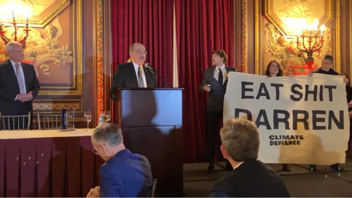 In March, a brand new, youth-led, collective gate-crashed a speech by a White House climate advisor and shut it down. A few weeks later, they did it again. And again. This year, they’ve stalked the galas, fundraisers, and book launches of the fossil-friendly political elite in Washington, and ruined every single event in style. But it was their delicious infiltration of a dinner honouring the CEO of ExxonMobil that helped the group hit the stratosphere, gaining them an audience of millions, and a private meeting with the White House. Climate Defiance are young, angry, and very savvy, and we can’t wait to see what 2024 brings. Hopefully more shit for Darren.