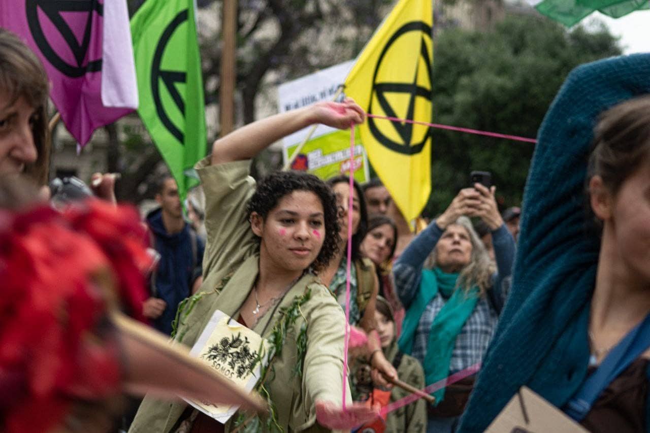 XR Argentina was a key part of the coalition, with 10 regional groups bringing banners, drums, and actions to marches across the country. In Buenos Aires, rebels performed an intricate group dance while tethered together by threads, mirroring the mycorrhizal networks that bind fungus to plants and nourish entire ecosystems.