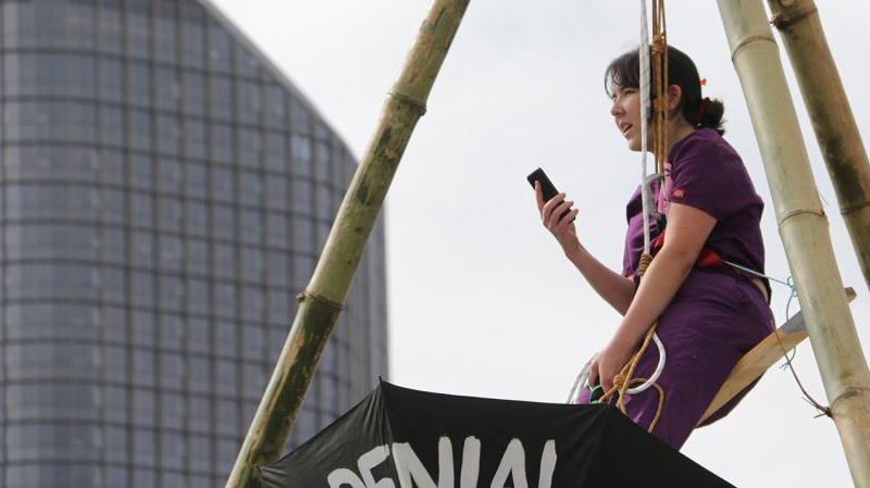 28 Nov | Australia: Tasmania declared it is powered entirely by renewable electricity but Hobart rebels still sat in silence to support the National Day of Action against Gas.