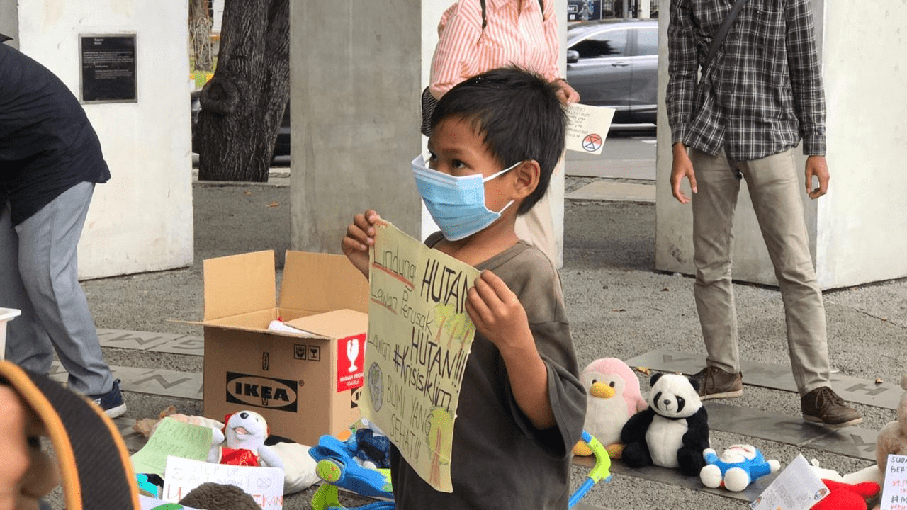 A young Indonesian rebel takes part in a Toy Strike on World Children’s Day