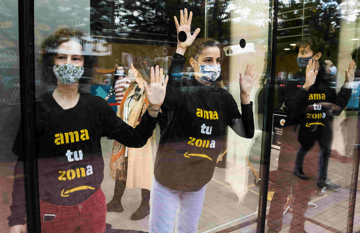 26 Nov | Spain: Rebels glue themselves to Amazon’s Barcelona HQ on Black Friday. The online behemoth has destroyed the environment and workers rights to amass vast profits. Anti-Black Friday actions were also held by rebels in France, Germany, Netherlands and Poland.
