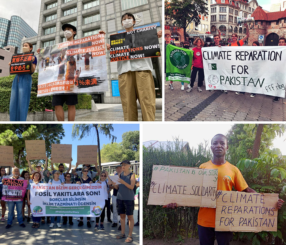 9 SEP | Worldwide: Thousands of activists, including rebels, across 15 countries took to the streets in solidarity with the people of Pakistan. The action was organised by This Is Our Story, a new group specialising in rapid solidarity actions after climate disasters. Top left to bottom right: Tokyo, Nuremberg, Istanbul, Rutshuru DRC.
