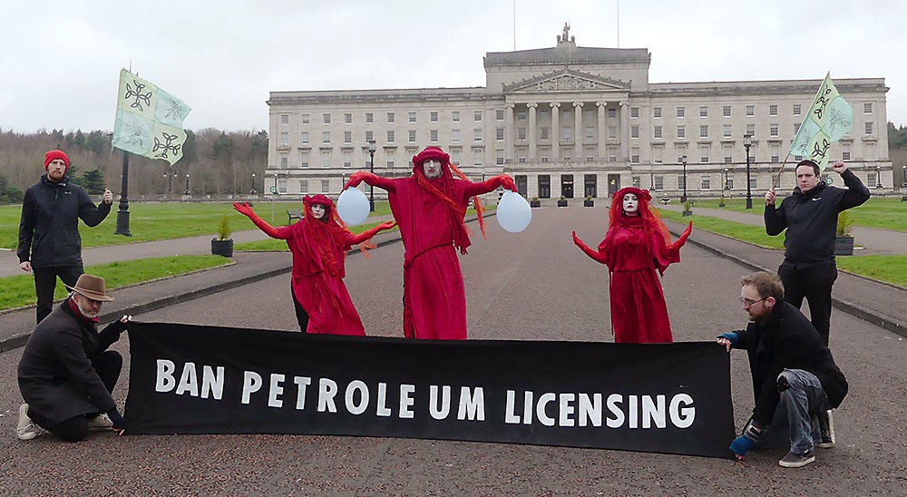 26 JAN | Belfast, Northern Ireland Rebels doorstepped their Parliament to highlight how the government’s Blue Hydrogen energy strategy is a pro-fracking scam.
