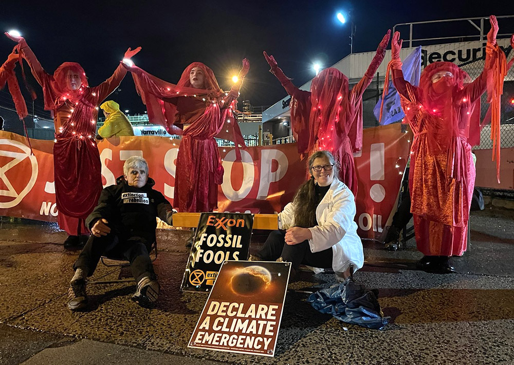 31 MAY | Melbourne, Australia: Rebels shut down the city’s ExxonMobil depot. The change of government in Australia, they say, doesn’t mean the climate emergency has gone away. Their message to the fossil fuel companies and new government: JUST STOP IT! NO MORE COAL, GAS OR OIL!
