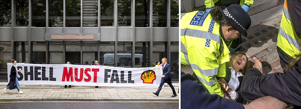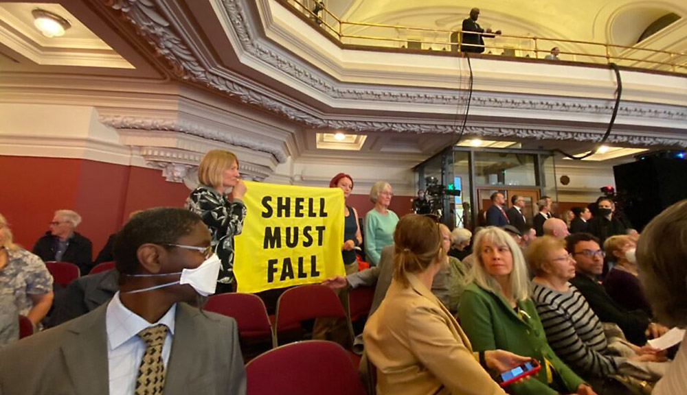 24 MAY | London, UK: More than 80 rebels and other activists disrupted Shell’s first annual general meeting in the UK. A flash mob upstaged the Shell Chairman’s address, singing “We will, we will stop you” to the tune of ‘We Will Rock You’. Others glued themselves to chairs and interrupted speeches, with protestors from Nigeria, the Netherlands and the UK reading out testimonies accusing Shell of human rights abuses, ecocide, fueling climate breakdown and funding misinformation.
