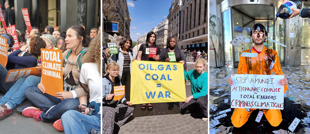 25 MAY | Paris, France: More than 250 environmental activists including rebels and members of Friends of the Earth France blocked fossil fuel giant Total’s annual general meeting so successfully that the event was finally cancelled. Other activists targeted the banks and institutions that finance Total’s climate destruction.
