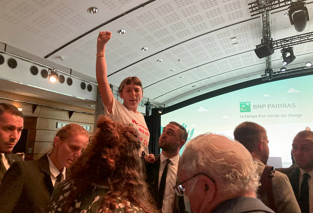 17 MAY | Paris, France: Eight days earlier, climate protestors disrupted the annual general meeting of BNP Paribas. The ninth largest banking conglomerate in the world, BNP Paribas is Total’s second largest banker.
