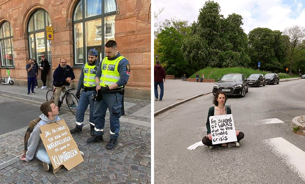 26 MAY | Lund, Sweden: Several Rebellions of One took place in the streets of the southern Swedish town of Lund. One of the rebels said of her action: “The climate crisis is a justice crisis, and I am terrified. The disruption I am causing is nothing compared to the climate crisis.”