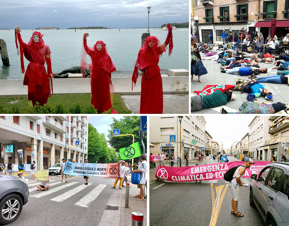 27 - 29 MAY | Venice, Italy: A three-day rebellion in and around the city of Venice was marked by red rebels protesting in front of the Venice lagoon, a die-in in one of the city’s squares, and road blockades in the town of Mestre on the mainland.