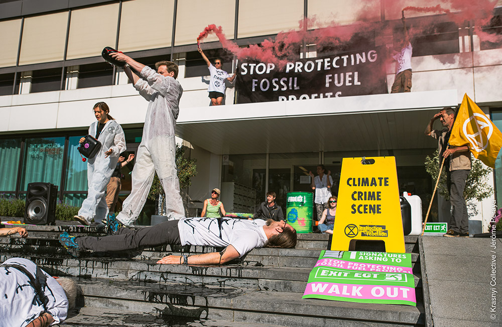 23 JUNE | Brussels, Belgium Rebels and WeMove Europe activists block the Energy Charter Treaty (ECT) building and its conference room. The ECT allows fossil fuel companies to obstruct the transition to renewables and must end now!