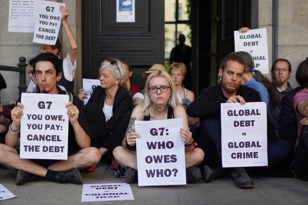 27 JUNE | Berlin, Germany 100 activists totally block the Finance Ministry, a key player in the IMF where Germany holds huge voting power and could steer the world towards debt cancellation for Climate Justice. 20 activists glued themselves to doors and driveways to demand an end to neo colonial exploitation through debt. Photo: Marlene Charlotte Limburg