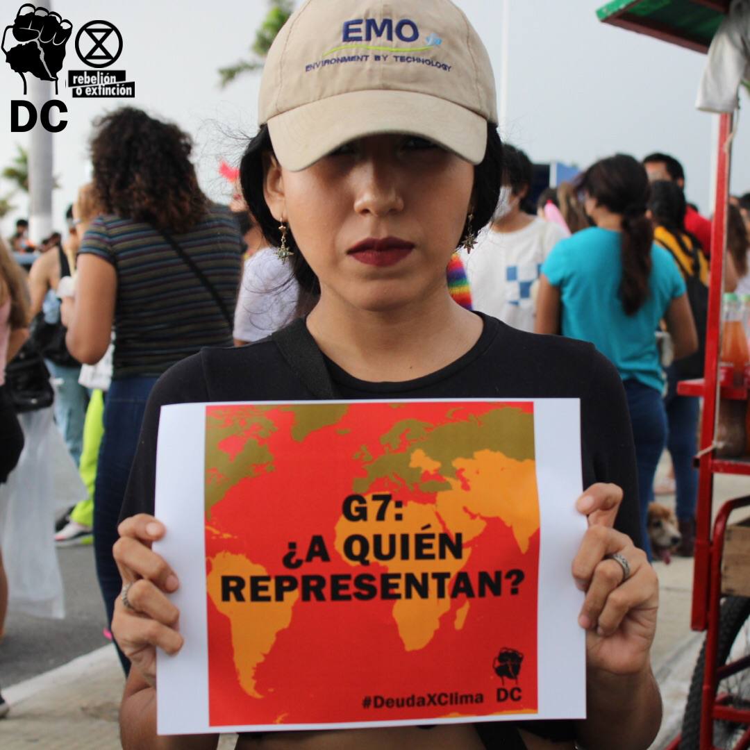 28 JUNE | Campeche, Mexico Rebels talked about D4C to passersby and handed out tickets with personalised messages on global, national and local eco-problems. Sign: G7 Who Do They Represent?
